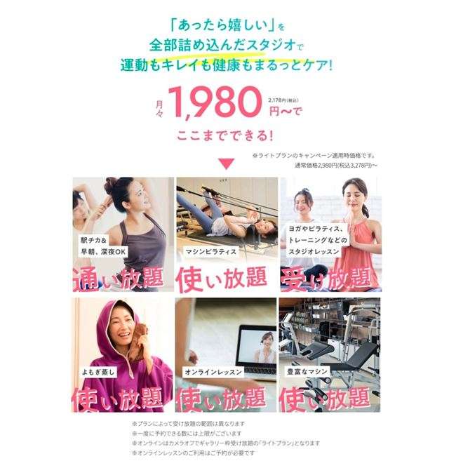 「ヨガ・マシンピラティス・よもぎ蒸しなど 全部受け放題」